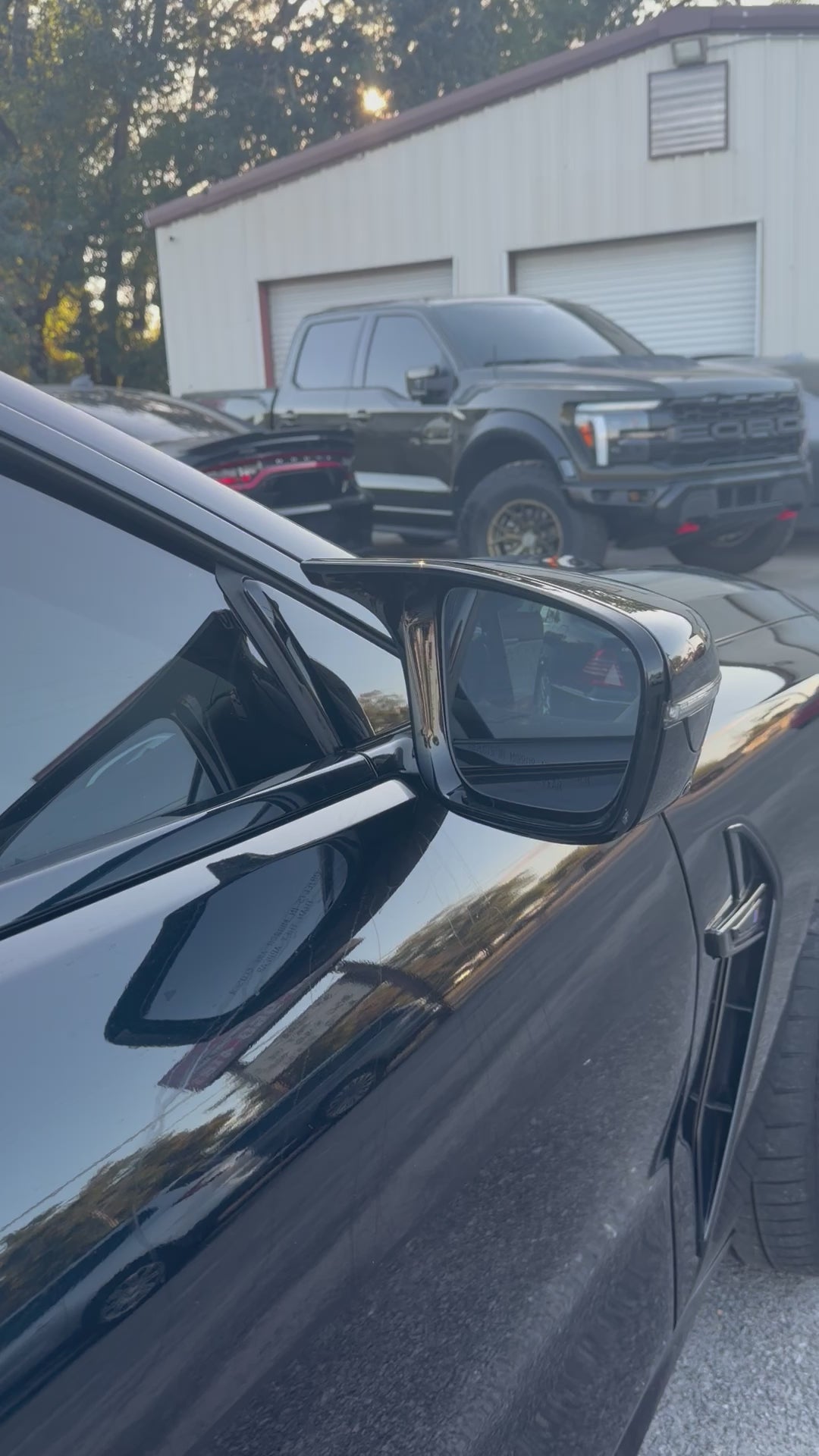 Genuine dry carbon fiber product. True pre preg carbon fiber with glossy finish. Flush installation position followed by precisely made tabs/clips. Carbon inside and outside of each mirror cap. Comes as a pair left + right